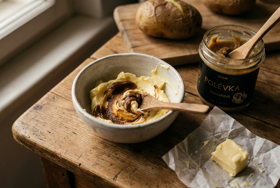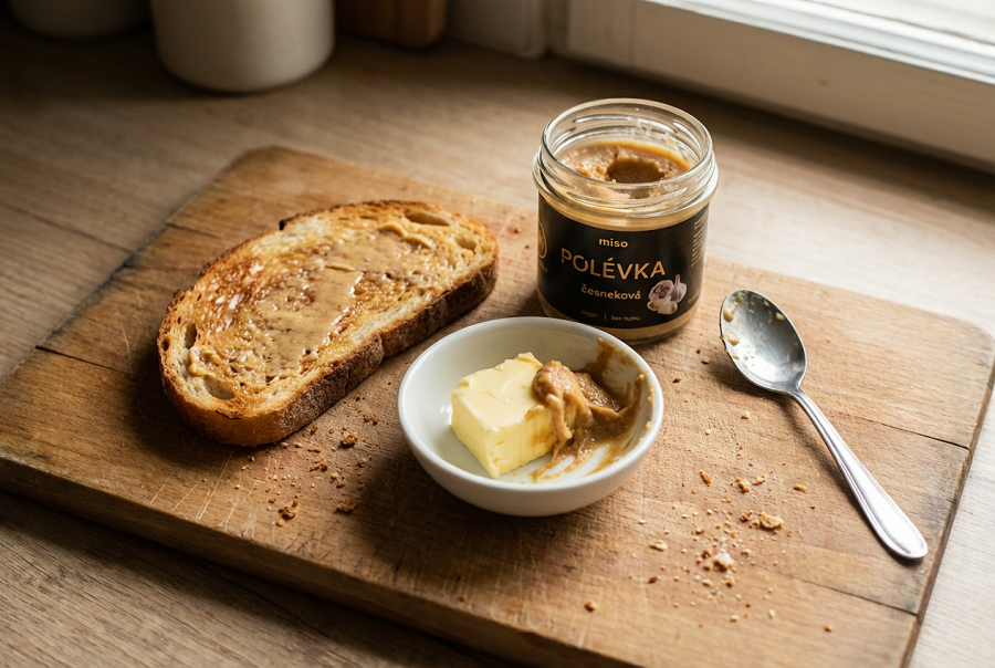 Pokud jste miso polévku zatím používali jen na zalévání vodou, zkuste jeden z těchto pěti způsobů. Začněte třeba topinkou s česnekovou — to je nejjednodušší vstupní brána do světa, kde se miso přestane schovávat v polici a začne být součástí každého jídla.