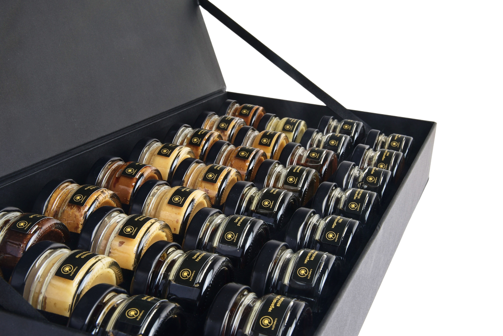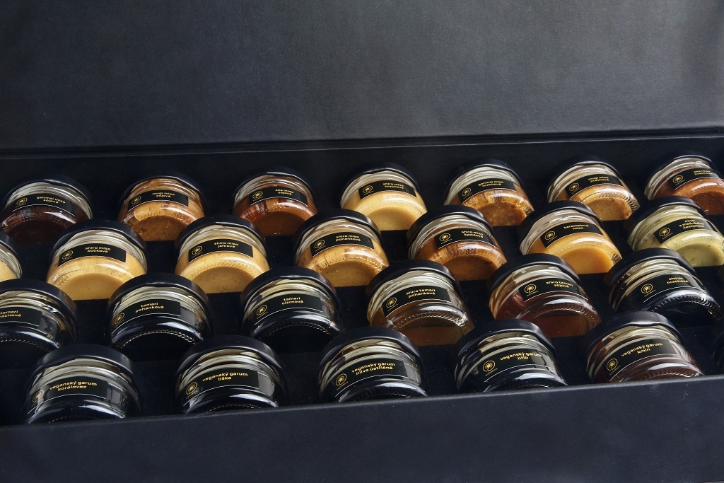 V elegantním černém kufříku najdete třicet vzorků toho nejlepšího z naší dílny: od jemných i dlouze fermentovaných miso past přes naše tekuté poklady v podobě tamari a shoyu až po veganské garumy, které umí v jídle doslova kouzlit. Je to komplexní mapa světa umami, jak jej vnímáme my.