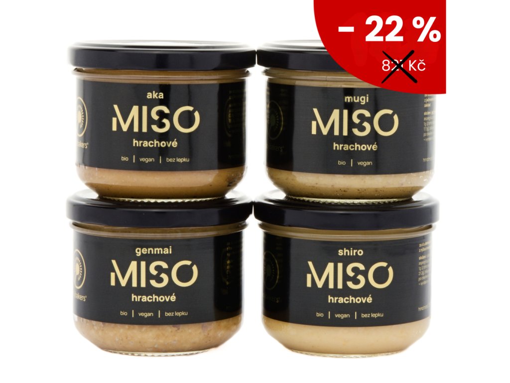 The set contains pea shiro miso, pea genmai miso, pea mugi miso and pea aka miso.