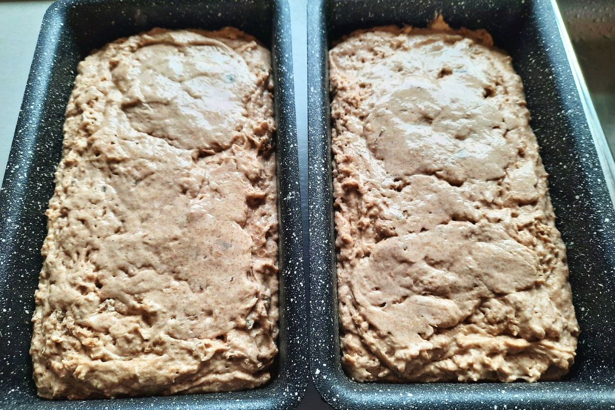 Rozehřejte troubu na 250 °C(230°C), a jakmile se hladina těsta zvedne alespoň o 2 cm, pak snižte výkon na 210 °C a pečte 50 minut. Poté jej vyklopte z forem a dalších cca 10 minut pečte na mřížce. Možná bude třeba chleba zakrýt, záleží na kvalitě trouby.