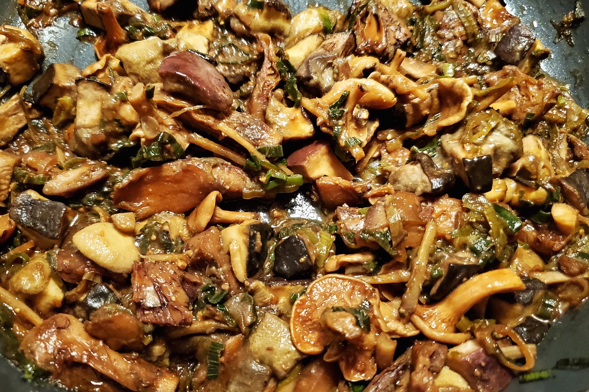 - Když houby změknou, přidáme zbytek ingrediencí a vaříme, dokud se z nich nevytratí voda